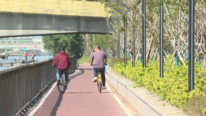 滨水绿带项目包含新建护岸、跨支河桥梁、人行步道、骑行道、景观绿化等设施,一期3.8公里长的项目竣工后,获得了居民的广泛好评。近日竣工的二期项目长7.5公里,内容延续一期项目的同时进行了优化。其中,最值得一提的是构建了极具特色的生态慢行系统,河道两岸全线新建两条慢行通道,分别为人行步道和自行车骑行道,实现“人车分离”。两条慢行通道互通,周边增设了配套景观绿化、栏杆、灯光、休闲座椅等设施。