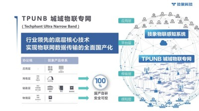 为满足泛在智能、绿色高效、可信安全等需求,技象科技设计研发自有知识产权的新一代物联网技术体制及自主可控的物联网芯片,自主研发出无线窄带物联网通信系统TPUNB(Techphant Ultra Narrow Band),该系统解决了窄带专网领域长期被国外技术“卡脖子”的难题。
