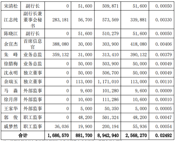 除了大股东增持外,最近这一个季度以来,南京银行高管和部分董事、监事合计20人也增持了该行股票。