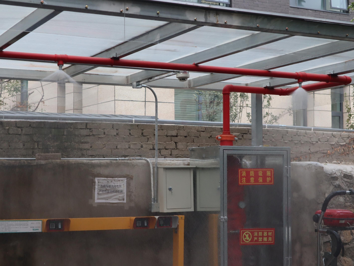 据介绍,燕园街道引入喷淋系统,从“物防、技防、人防”三方面对小区实现火灾防控。在承泽园社区居委会的配合下,街道用了两个月左右的时间进行前期调研、设计线路、筹备安装等工作,终于在承泽园小区成功试点电动自行车棚喷淋系统。