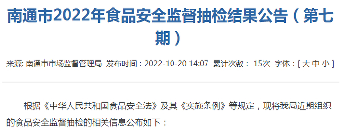 中国质量新闻网讯 近日,江苏省南通市市场监督管理局发布南通市2022年食品安全监督抽检结果公告(第七期)。本次公告的监督抽检信息涉及24大类食品共计1184批次。其中抽检调味品36批次,合格样品36批次。