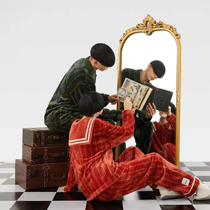 夹棉家居服为开衫版型,双层纽扣设计体现英伦学院风。