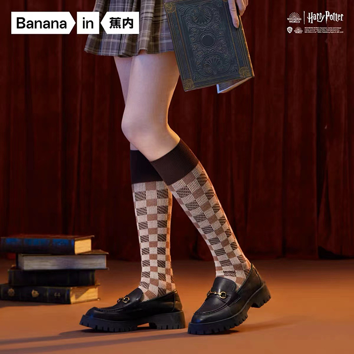 围巾、袜子等配饰则沿用格纹设计,搭配《哈利波特》主题元素。