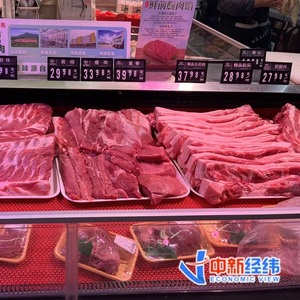 21日,中新经纬在北京某连锁超市内看到,普通现切前腿肉的价格已经涨到17.98元/斤,里脊肉35.98元/斤,五花肉31.98元/斤,鲜肋排46.98元/斤。而在另一肉类专区,鲜肋排55.98元/斤,里脊肉39.98元/斤,精品五花肉37.98元/斤。