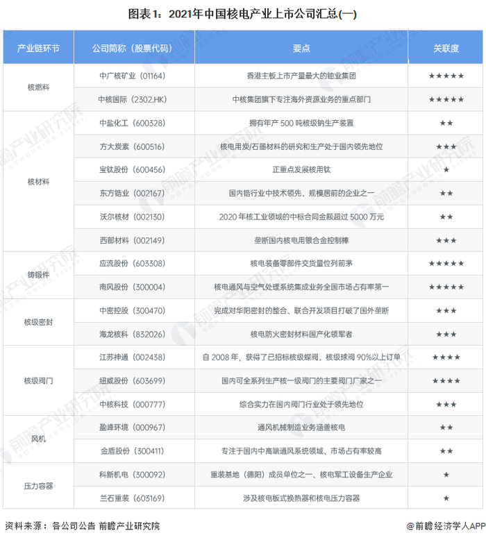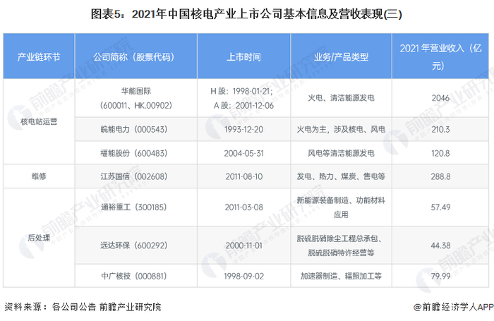 核电是我国能源供应体系的重要分支,也是新能源的重要组成部分。目前,我国核电产业的上市公司数量较多,分布在各产业链环节。其中,涉及核电站运营的上市公司包括:中国广核、中国核电、大唐发电等。