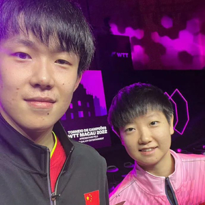 王楚钦赛后和孙颖莎合影。