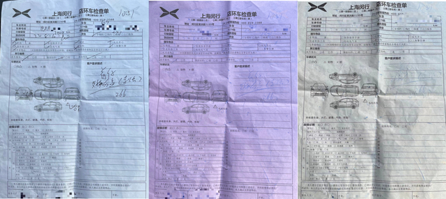 8月13日上午,董先生夫妇来到闵行服务中心询问该情况。董先生称,在和工作人员多次交涉后,对方提供了一份一式三联的环车检查单。而他指出,服务人员的操作不符合流程,检查单应当给前台、客户和厂家分别存档,而不是全给他个人,且检查内容也不能随意更改。