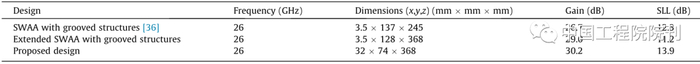 表3总结了原始SWAA和两个修改版本的尺寸和性能特征,即增益和SLL。