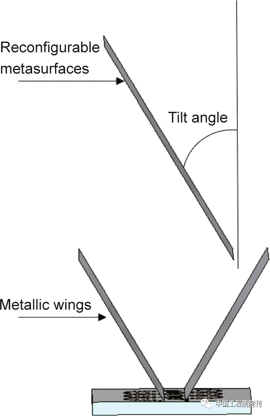 对于纵向扫描,之前讨论过带移相器的弯曲SIW,其由电子开关通道组成。为了在横向平面上进行扫描,可以使用位于阵列上方的可重构倾斜面板,如图21所示。同样也可以使用类似甚至是相同的面板在纵向平面上进行扫描,如图23所示;尽管灵活性不如插入在SIW导轨中的移相器所提供的灵活性。