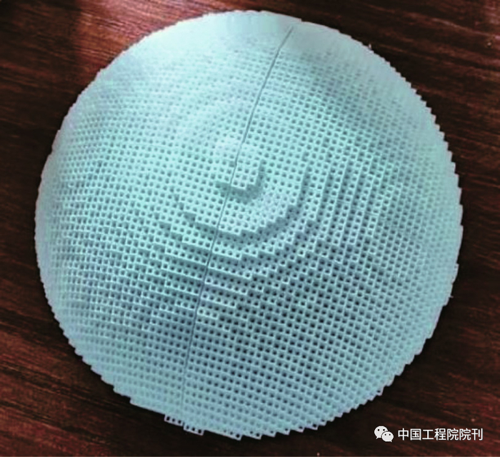 为了降低成本和简化制造工艺,采用PLA填充法设计了直径为14.5 cm的透镜。透镜的最外层(第6层)没有采用3D打印技术,相反,使用了介电常数为1.15的泡沫材料。然而,内部的5层都是3D打印的。3D打印透镜(内部5层)如图7所示。