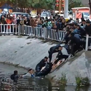 危急时刻,八名陌生人相继伸出援手,有毫不犹豫跳下水救人的,有在岸边抛下防尘网、绳索拉人的,有拽着绳子站在倾斜的堤坝上往上传递的,他们手拉手搭起“人梯”救下了父子俩。