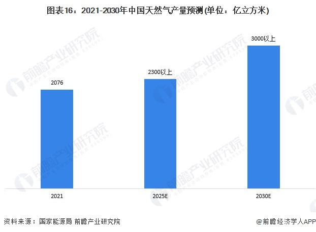 天然气属于清洁能源领域是我国近年来重点支持发展的产业,具有广阔的发展前景。随着“增储上产七年行动计划”持续推进,全国天然气产量快速增长,新增探明地质储量保持高峰水平。未来,我国将继续立足国内保障供应安全,推进天然气持续稳步增长。国家能源局预计我国天然气产量2025年达到2300亿立方米以上,2040年以及以后较长时期稳定在3000亿立方米以上水平。