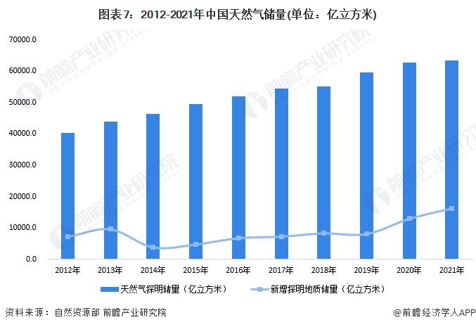 “十三五”以来,我国天然气气产供储销体系建设稳步推进,天然气储产量快速增长,“全国一张网”基本成型。根据自然资源部数据,2021年全国天然气新增探明地质储量16284亿立方米。截止到2021年底,我国天然气探明储量为63392.67亿立方米。