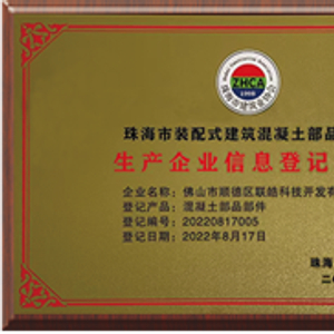 (装配式建筑混凝土部品部件生产企业信息登记证书)