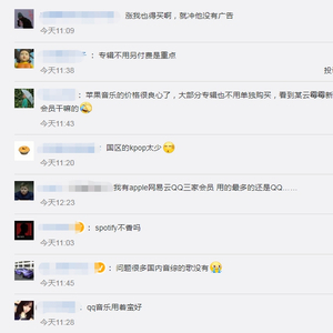 中新经纬注意到,话题“苹果音乐涨价”引发网友热议,有网友表示,“涨我也买啊,就冲他没有广告”“专辑不用另付费是重点”;但也有网友表示,“国区的kpop太少”“spotify不香吗”。(中新经纬APP)