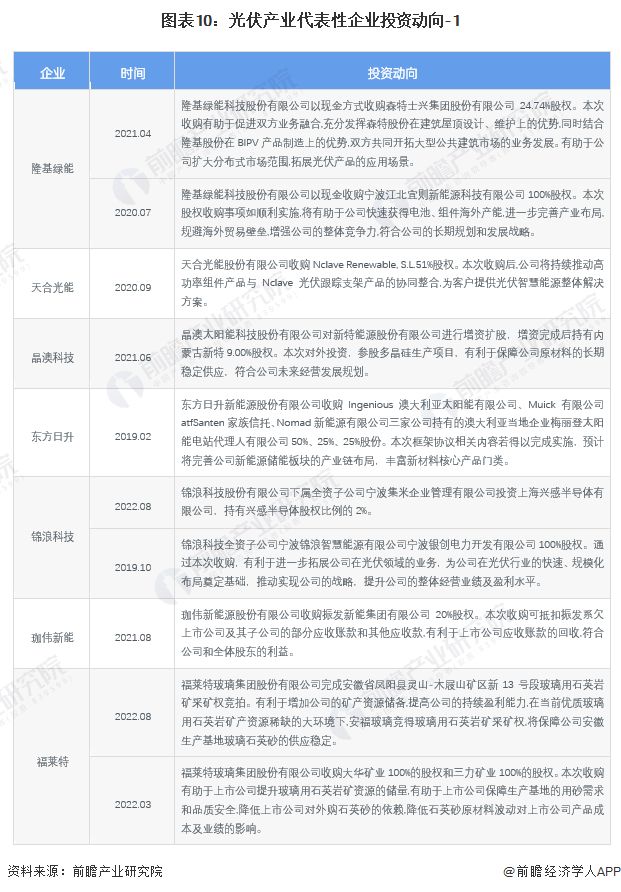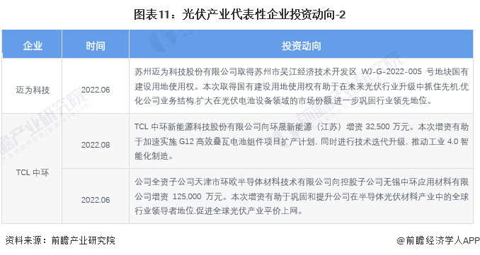 光伏产业代表性企业最新投资动向