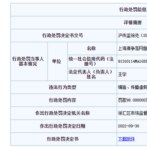 虚假宣传、编造信息贬低竞争对手 “清争落网鱼”被罚98万