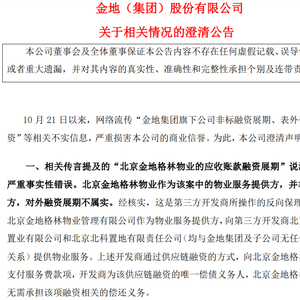 非标融资展期、表外信托借款?金地集团深夜澄清……