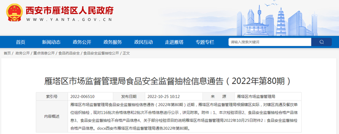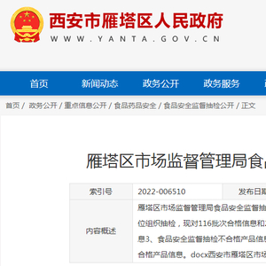 西安市雁塔区市场监管局食品安全监督抽检信息通告(2022年第80期)