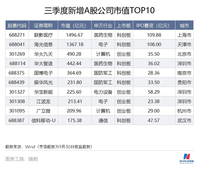 海光信息却不是市值最大的新增上市公司,它比联影医疗(SH688271,股价195.70元,市值1613亿元)还是差了几百个“小目标”。包括这两家公司在内,市值前十的新增上市公司,全部来自科创板或创业板。
