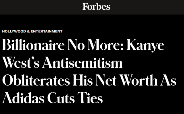阿迪达斯终止与“侃爷”合作,后者跌出亿万富豪榜