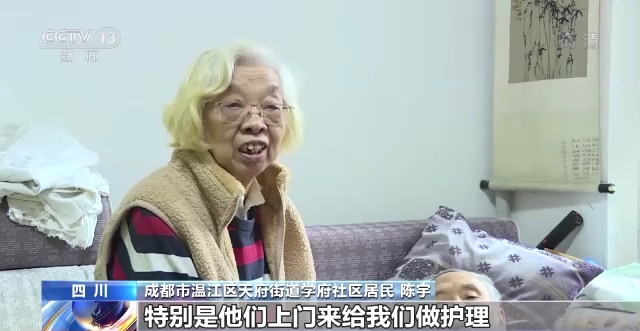 四川成都市温江区天府街道学府社区居民 陈宇:特别是他们上门来给我们做护理,减轻了我很多负担,而且教会了我很多护理的方法、护理的知识,让他恢复得更好。