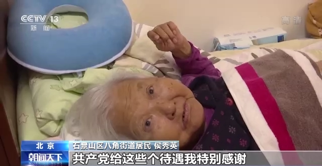 北京石景山区八角街道居民 侯秀英:按摩得特好,特有耐心,我特满意。共产党给这些个待遇我特别感谢。