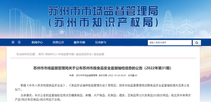 中国质量新闻网讯 2022年10月24日,苏州市市场监督管理局网站发布关于公布苏州市级食品安全监督抽检信息的公告(2022年第31期),涉及15批次酒类抽检合格信息。