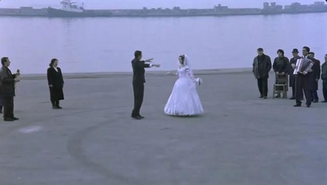 然而,假如我们细看婚礼场内男女双方的舞姿,特别是新郎的舞蹈,就会发现他们很是敷衍和机械,并不像很投入并享受其中的模样。可见,这对理论上最接近幸福和永恒的新人同时也是拥有最强盛身体力量的青年人在片中并非“永恒”的代言人。
