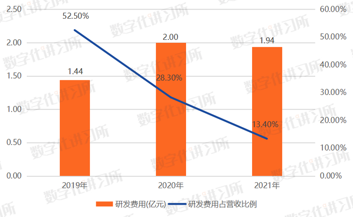 据公司招股书显示,2019年至2021年公司科研投入分别为1.44亿元、2.00亿元和1.94亿元,研发投入占营收比例从52.50%不断下降至13.40%。研发开支占营收比例的降低,主要原因是公司由外部采购研发结果逐步转向投资于内部研发活动,从而进一步节省成本。三年间公司研发人员分别为55名、369名和475名,并于2022年上半年扩大至517名。除此之外,公司还增设了自有的技术中心及数据中心,加大了人工智能、云计算、大数据及区块链技术领域的投资。