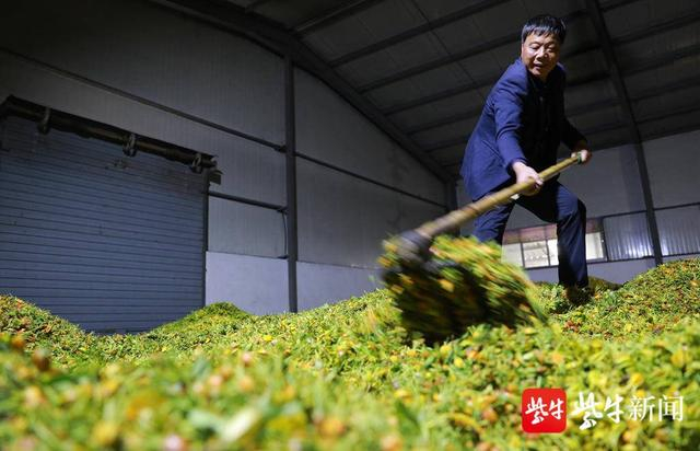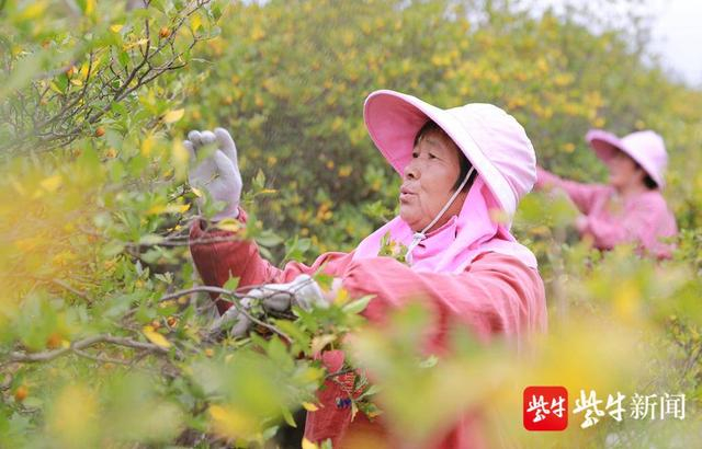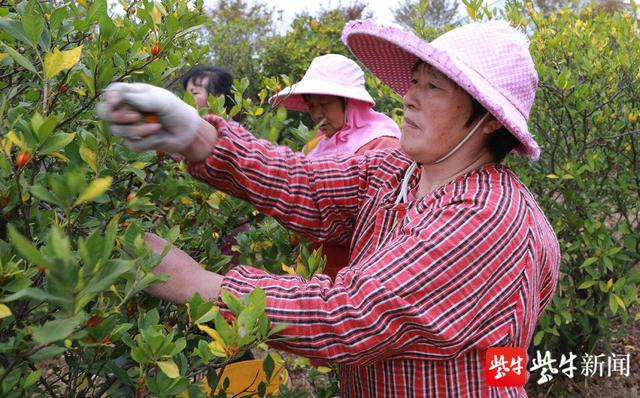 10月26日,在句容茅山风景区上杆村的山栀子种植基地,漫山遍野的山栀子已从深绿转向浅绿、微黄、橙红......村民们穿梭于树间,忙着采摘山栀子鲜果。种植基地负责人江峰指着树上黄橙色的栀子果告诉记者:“这个叫山栀子,也叫黄栀子,它是一种中药材,有清火、止血功效。”