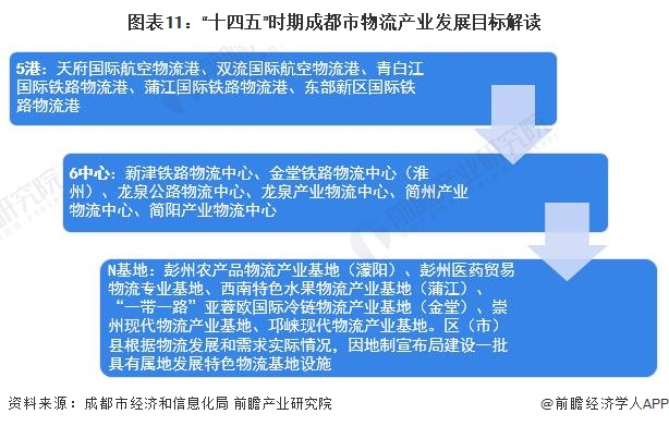 根据《成都市“十四五”综合交通运输和物流业发展规划》,“十四五”时期成都市将加强专业型、功能型物流中心及物流基地建设,完善“六中心”空间布局,服务超特大城市民生需求,满足重点产业生态圈和产业功能区发展需要。