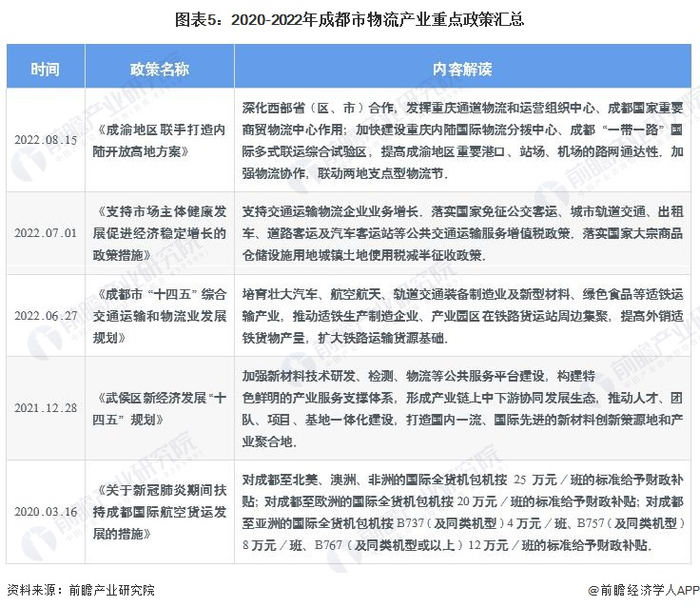 成都市物流产业政策环境