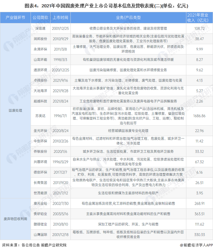 【最全】2021年中国固废处理行业上市公司全方位对比(附业务布局汇总、业绩对比、业务规划等)