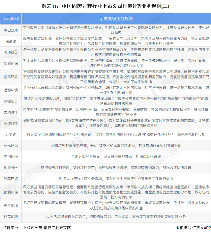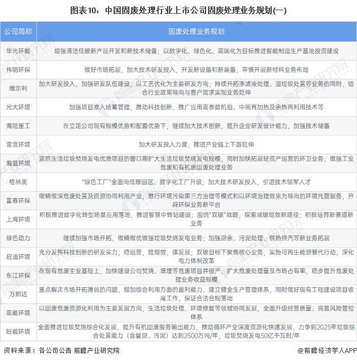 4、中国固废处理行业上市公司固废处理业务规划对比