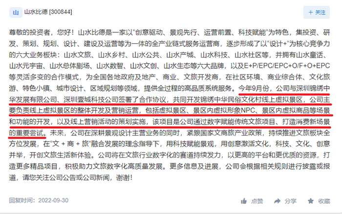 近期山水比德还在互动易平台上回复关于布局元宇宙相关的业务。
