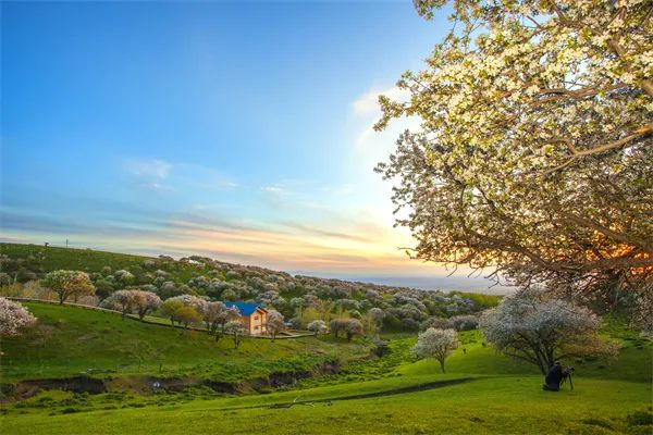 4.野果林景区:3A级旅游景区,位于吾尔喀夏尔山山脉西部,海拔高度900至1500米,总面积约10万亩,是苹果天然基因宝库。每年5月,是野苹果花的花期,苹果花开,满山芬芳,向世人呈现出如梦如诗的花海仙境。
