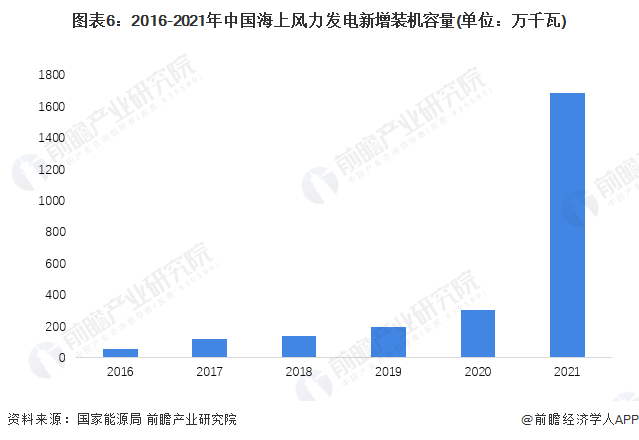 据国家能源局援引中电联的统计数据,2016-2021年全国海上风电新增装机容量由2016年的59万千瓦增长至2021年的1690万千瓦。受国家补贴政策退坡影响,2021年我国海上风电迎来抢装潮,新增装机量大幅上升。