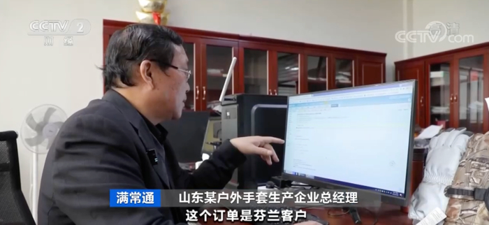 山东某户外手套生产企业总经理 满常通:这个订单是芬兰客户给我们来的翻单,12000双,价格增加了10%,今年欧洲客户下了很多这样的订单。攀岩手套、摩托车运动手套,这些手套既能保暖又有功能性,在他们国家很受欢迎。