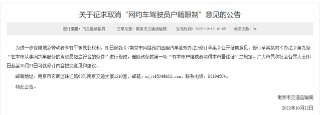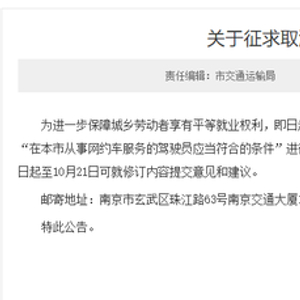 南京拟取消" 网约车驾驶员户籍限制 "