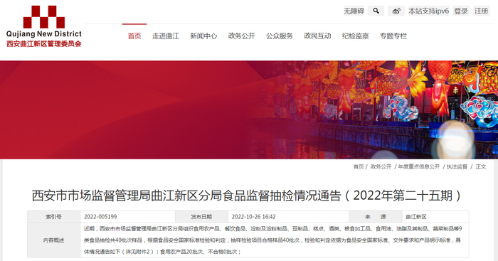 西安市市场监督管理局曲江新区分局食品监督抽检情况通告(2022年第二十五期)