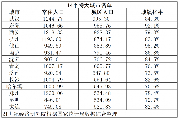 盘点14个特大城市:武汉连续两年人口增幅超百万,莞佛“双子星”城镇化率超90%