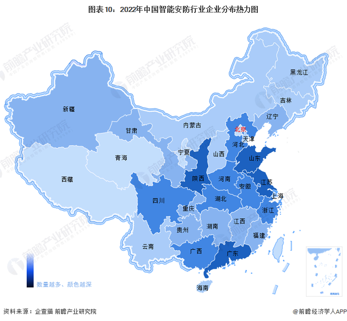 根据企查猫数据,截至2022年9月,广东、山东、江苏和陕西智能安防相关企业数量均超过4万家,领先于其他地区,其中广东省相关企业数量超过7万家,位列全国第一。