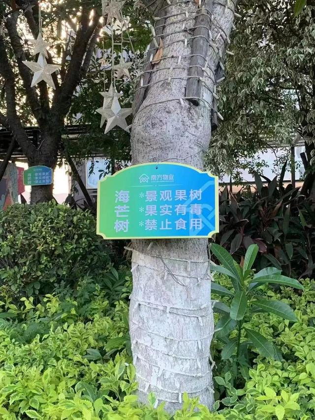 经过协调,该小区物业已在这三株“海芒果”树下立起警示标牌,提醒附近居民注意。