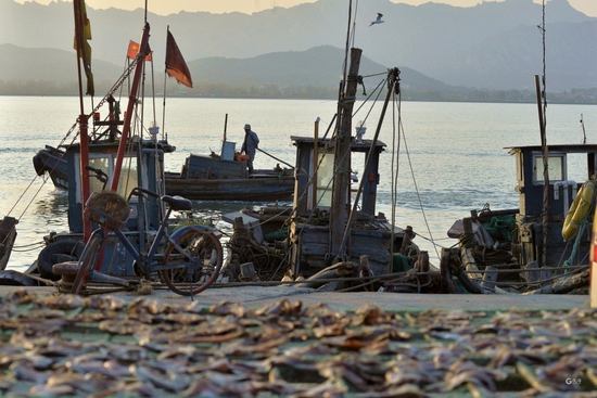 秋风起忙晒鱼,崂山港东码头鱼干飘香