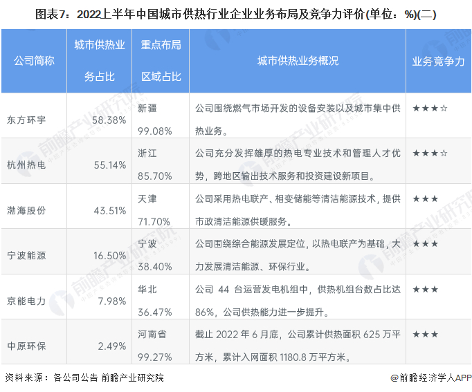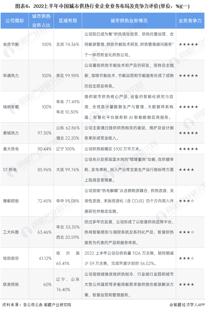 本文核心数据:城市供热企业竞争格局;企业城市供热业务占比