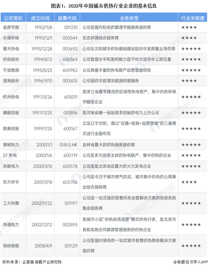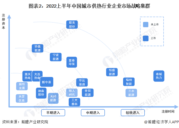 城市供热行业企业大部分成立市场较长,按照注册资本和进入市场的时机可做粗略划分,包括早期进入玩家、中晚期进入玩家,通过市场经营积累和是否受资本市场青睐能反映出企业的市场吸引力。