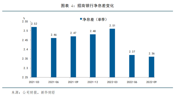 新华财经北京10月31日电(分析师张威 吴丛司 鲁光远)2022年三季报显示,招商银行前三季度营业收入同比增长5.34%,归母净利润同比增长14.21%。与中报相比,营收增速继续放缓,净利润增速有所回升。息差收窄压力下,净利息收入同比增速放缓至7.63%,受财富管理业务收入下滑影响,净手续费及佣金收入同比增速降至0.02%。三季度末不良率0.95%,环比持平,不过关注率、逾期率环比上升。总体上,招商银行净利润增速保持在过去十年平均增速之上,资产质量处在多年最优水平,保持平稳态势。同时,拨备覆盖水平处在历史高位,风险抵补能力强大,整体保持稳健运行态势。