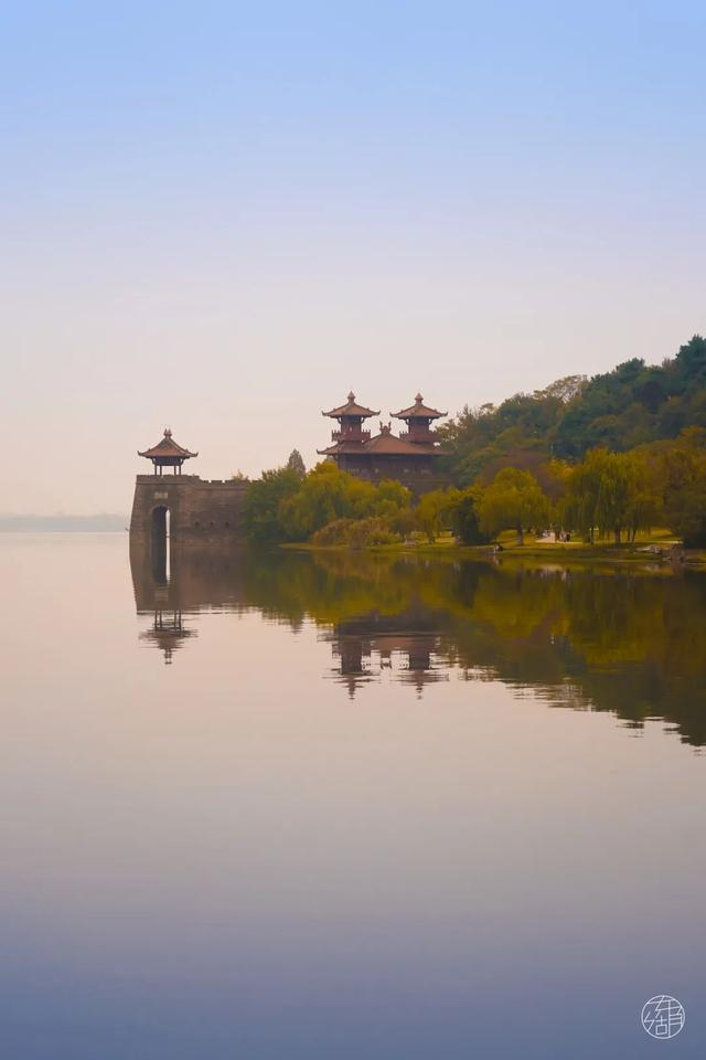 九曲桥旁的湖边,其实就藏着一处与磨山相望的绝美机位。
