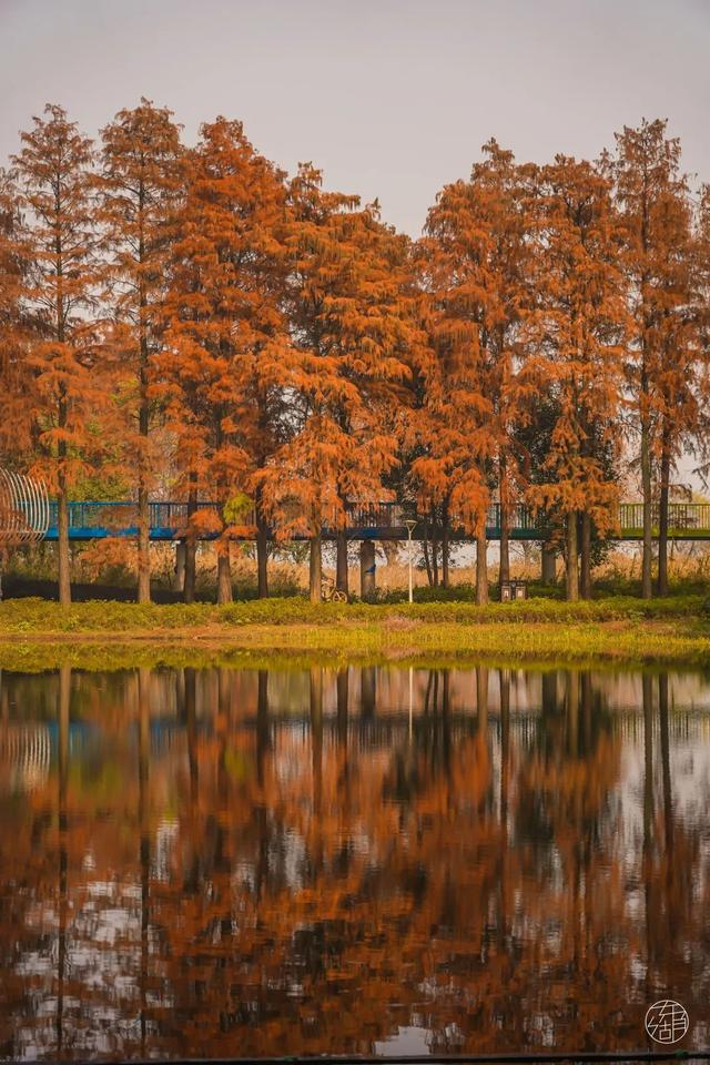 秋天东湖的杉树换上红装,给这个季节带来一丝暖意。